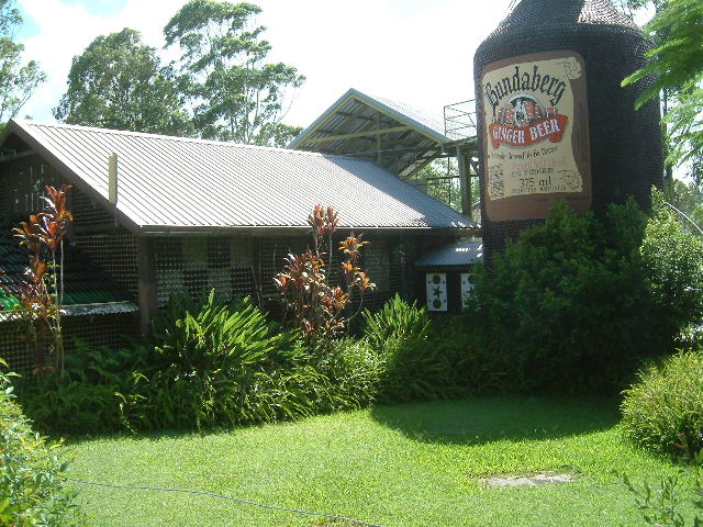 | Das ist eine Bierflasche, die neben einem Haus steht das nur aus