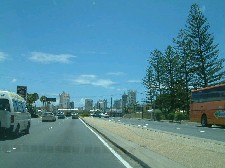 | Da kommt die Skyline von Surfer's Paradise auf uns zu. |