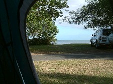 | Und so sieht unser Blick aus dem Zelt am nächsten Morgen aus. |
