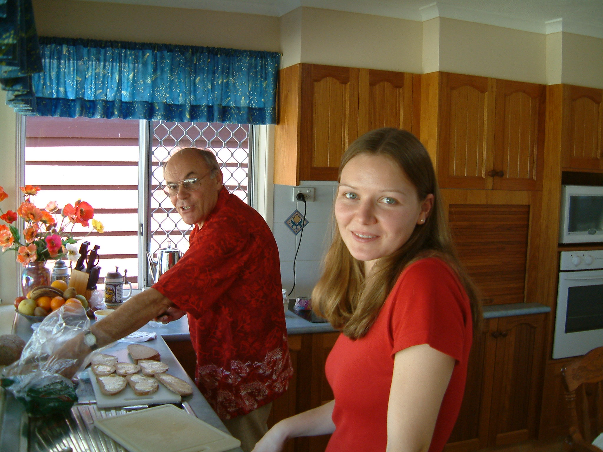 Ein guter Bekannter und die Ingrid beim Häppchen machen.
