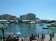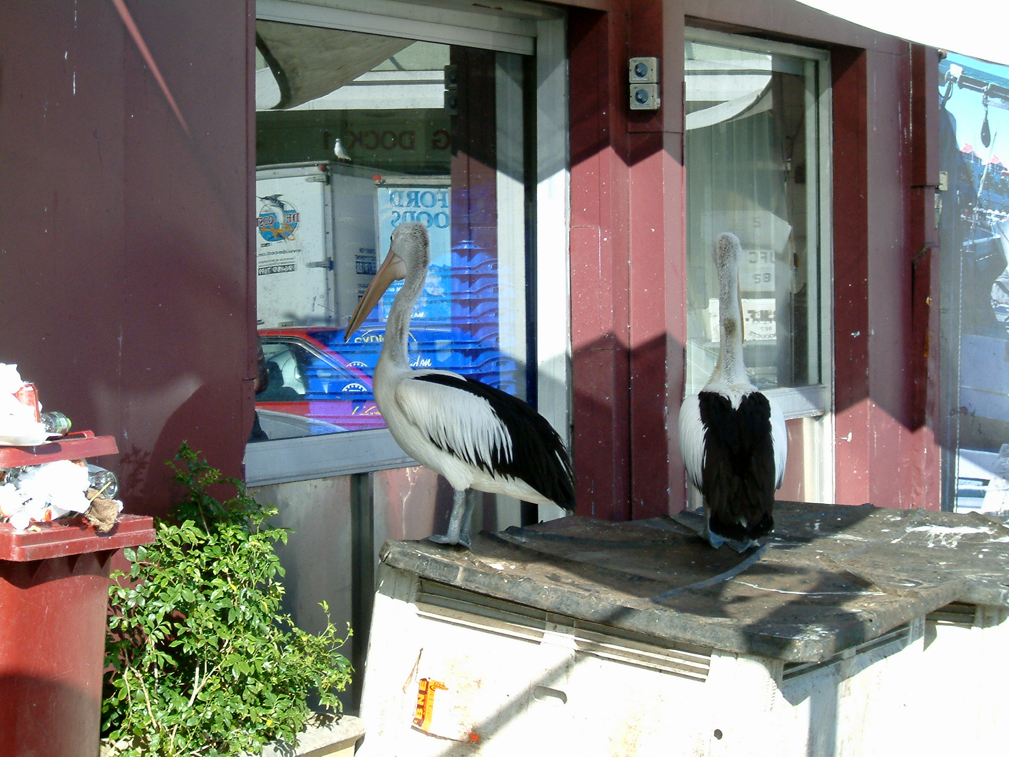 Am Fischmarkt gibt es auch ein paar lebendige Pelikane!