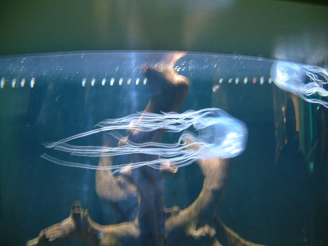 | Und das sind die Quallen, die es einem beinahe unmöglich machen im Meer