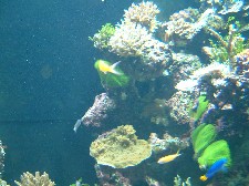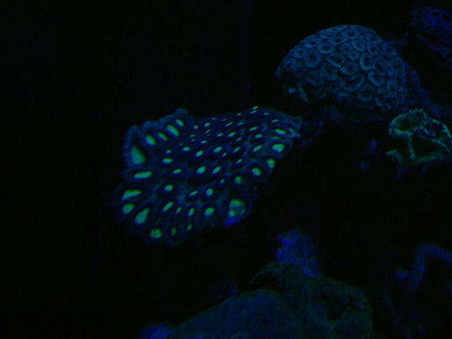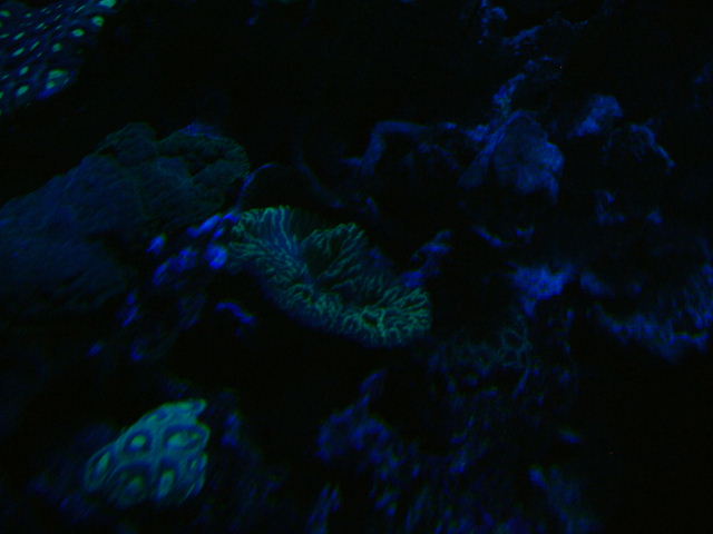 | Diese Korallen sind unter Schwarzlicht ausgestellt. |
