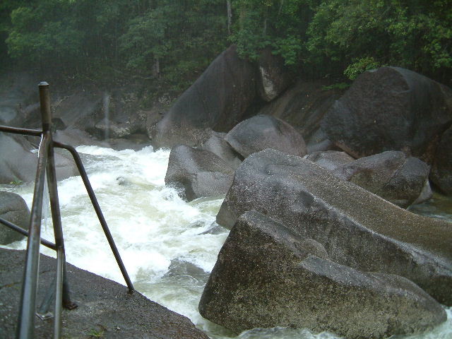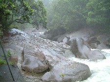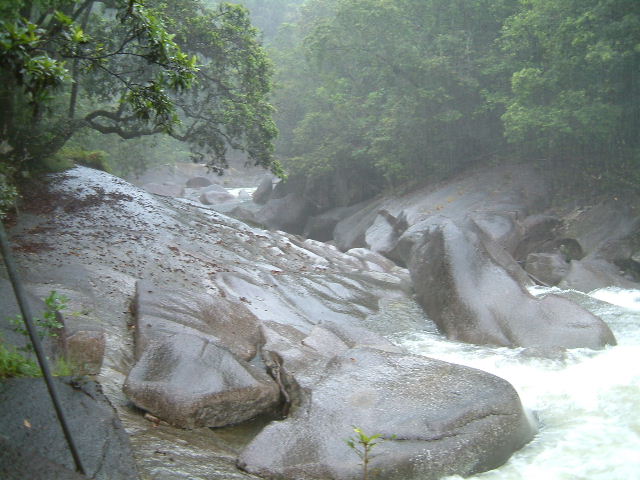 | Hier sind wir im wirklich strömenden Regen zu den "Boulders"