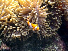 | Eine der weichen Korallen mit einem Clownfisch. Oder für die Kenner auch