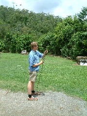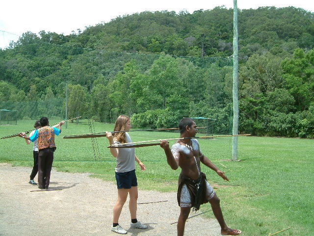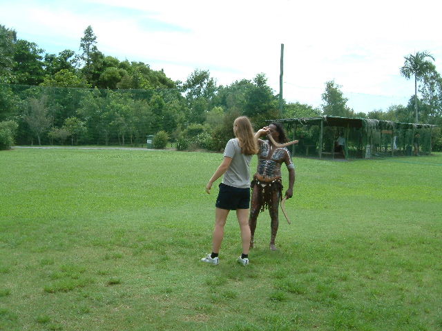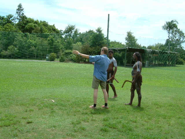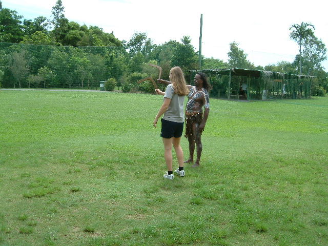 | Ingrid bekommt gerade das Boomerangwerfen beigebracht und macht es nicht