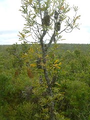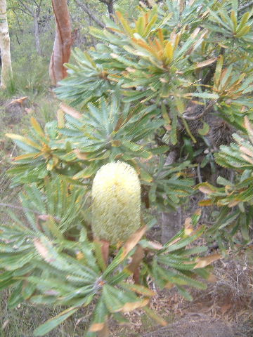 | Das ist eine Banksia mit ihren Zapfen. Diese Pflanze braucht Feuer um die Samen herauszusprühen. | |