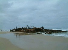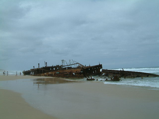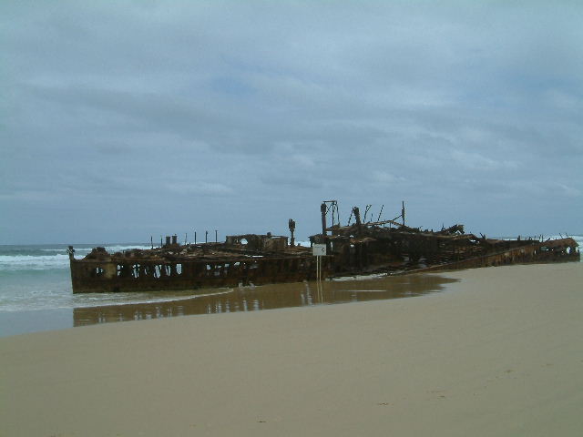 | Das ist das Schiffswrack der "Maheno". Das Schiff war relativ lange in Betrieb und nachdem es außer Betrieb genommen wurde sollte es nach Japan geschleppt werden um den Stahl wieder zu verwenden. Leider wurden sie zwischendrin von einem Zyklon erwischt und das Abschleppseil riss. | |