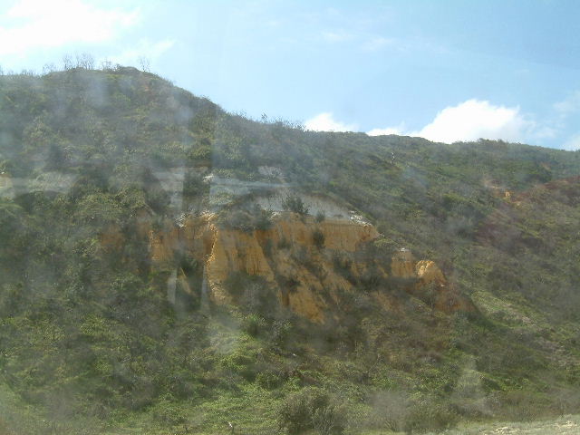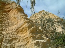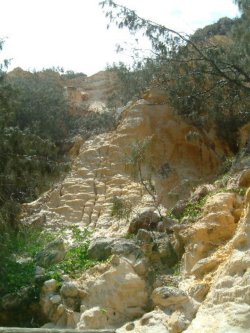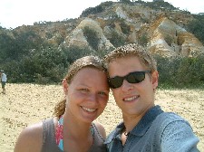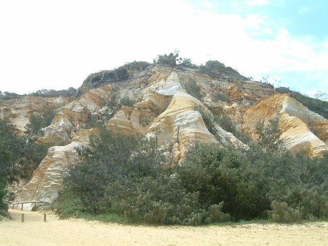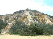 | Die "Coloured Sands". Das ist kein Gestein, sondern nur gut gepresster Sand. | |