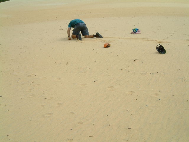 | Man sieht das nicht richtig, aber da ist mal wieder ein kleines Süßwasserflüßchen. Das Wasser ist leider zu klar um es zu fotografieren. | |