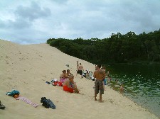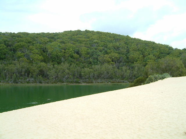 | Und da ist der See (Lake Wabby)! Mitten im Sand. | |