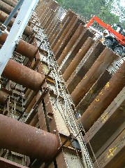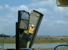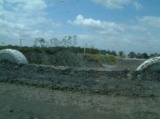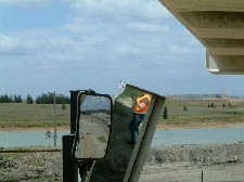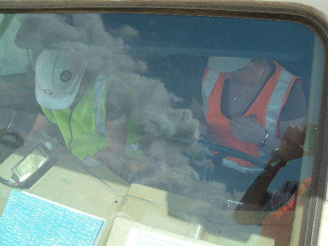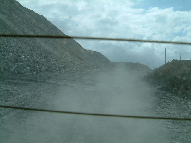 Staubentwicklung nicht so groß ist. Später werden die Laster dann noch